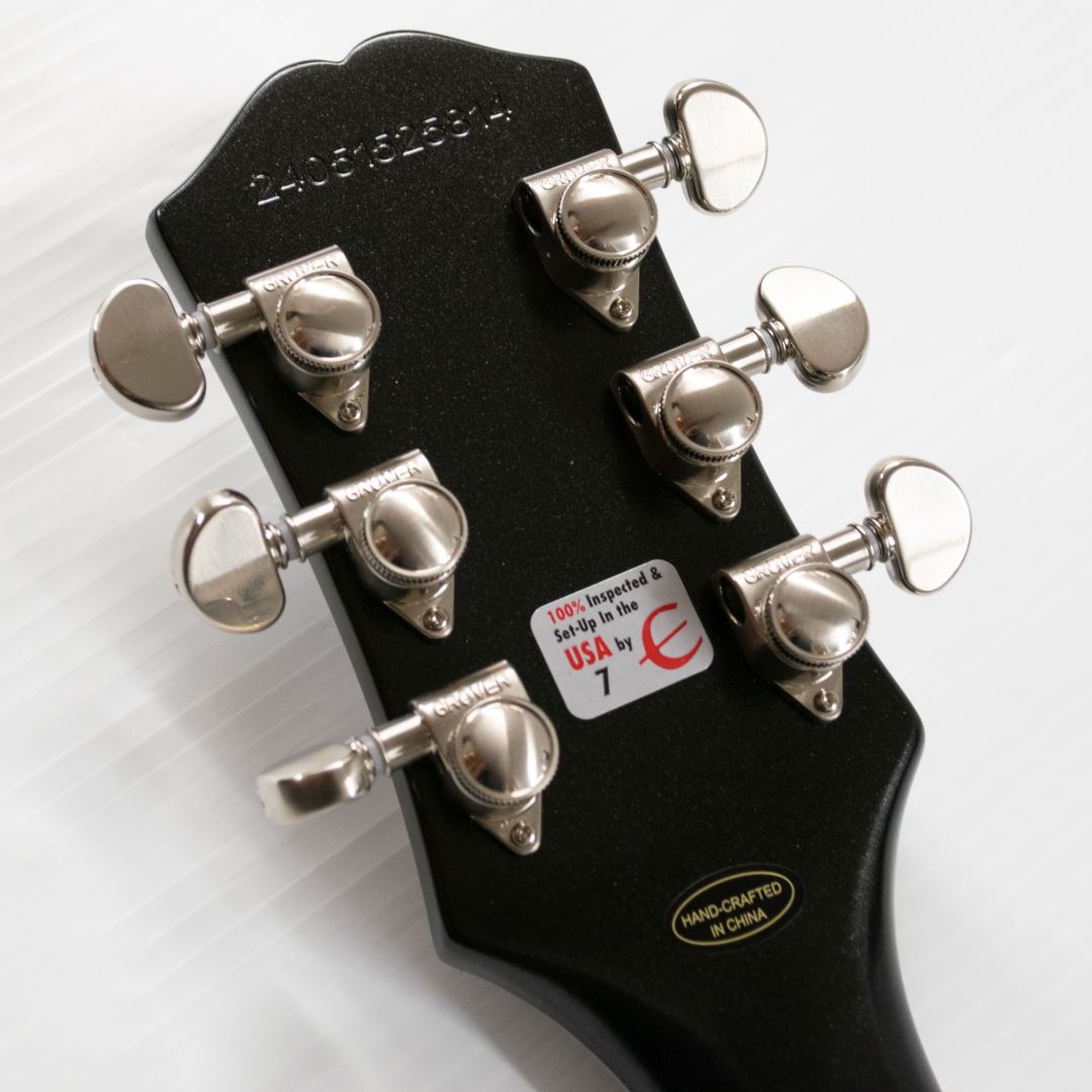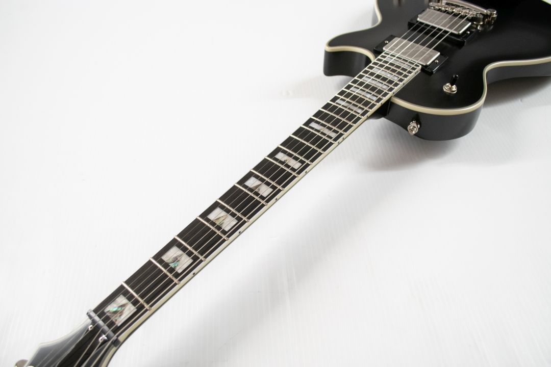 - 12-in.-radius ebony fingerboard with 24 jumbo-size frets provides 2 octaves of expanded playability